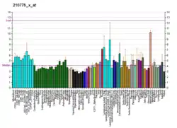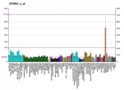 Caspase-9 in humans is expressed in fetus and adult tissues.[13][11] Tissue expression of caspase-9 is ubiquitous with the highest expression in the brain and heart, specifically at the developmental stage of an adult in the heart's muscle cells.[17] The liver, pancreas, and skeletal muscle express this enzyme at a moderate level, and all other tissues express caspase-9 at low levels.[17]