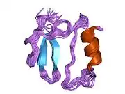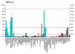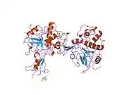 HLA class II histocompatibility antigen gamma chain also known as HLA-DR antigens-associated invariant chain or CD74 (Cluster of Differentiation 74), is a protein that in humans is encoded by the CD74 gene.[5][6] The invariant chain (Abbreviated Ii) is a polypeptide which plays a critical role in antigen presentation. It is involved in the formation and transport of MHC class II peptide complexes for the generation of CD4+ T cell responses.[7][8] The cell surface form of the invariant chain is known as CD74. CD74 is a cell surface receptor for the cytokine macrophage migration inhibitory factor (MIF).[9]