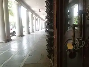 The lockdown restricted people from stepping out of their homes.[25] All transport services–road, air and rail–were suspended, with exceptions for transportation of essential goods, fire, police and emergency services.[29] Educational institutions, industrial establishments and hospitality services were also suspended.[29] Services such as food shops, banks and ATMs, petrol pumps, other essentials and their manufacturing are exempted.[30] The Home Ministry stated that anyone who fails to follow the restrictions can face up to a year in jail.[29]