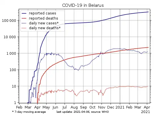 - "Минздрав опубликовал свежие данные по COVID-19: 968 случаев за сутки, 10 смертей". tut.by (in Russian). 6 April 2021. Retrieved 6 April 2021.