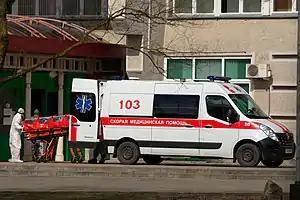 On 2 April, a total of 324,694 confirmed cases were reported, including 315,226 recoveries and 2,267 deaths. More than 5,406,000 COVID-19 tests had been conducted in Belarus to date.[8] On 3 April, a total of 326,065 confirmed cases were reported, including 316,649 recoveries and 2,276 deaths. More than 5,424,000 COVID-19 tests had been conducted in Belarus to date.[9] On 4 April, a total of 327,304 confirmed cases were reported, including 318,033 recoveries and 2,285 deaths. More than 5,443,000 COVID-19 tests had been conducted in Belarus to date.[10] On 5 April, a total of 328,290 confirmed cases were reported, including 318,756 recoveries and 2,294 deaths. More than 5,453,000 COVID-19 tests had been conducted in Belarus to date.[11] On 6 April, a total of 329,258 confirmed cases were reported, including 319,601 recoveries and 2,304 deaths. More than 5,460,000 COVID-19 tests had been conducted in Belarus to date.[12] On 7 April, a total of 330,536 confirmed cases were reported, including 320,844 recoveries and 2,314 deaths. More than 5,478,000 COVID-19 tests had been conducted in Belarus to date.[13] On 8 April, a total of 331,808 confirmed cases were reported, including 322,223 recoveries and 2,324 deaths. More than 5,496,000 COVID-19 tests had been conducted in Belarus to date.[14] |