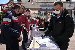 As of 30 March, Belarus had not initiated a nation-wide quarantine effort.[20] That, as well as the gradual decrease in transparency of the official reports on the pandemic, led to criticism from the press and population, emphasizing the absence of up-to-date information about the territories affected by the virus, decreased update frequency and increased ambiguity of the official reports, as well as restraint of the non-governmental media from the government sessions on the epidemiological situation in the country.[21]