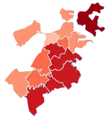 ![]() Map of the outbreak in Boston by total confirmed infections per 100,000 people (as of October 8)