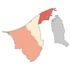 ![]() Map of districts in Brunei with confirmed COVID-19 cases: