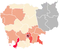 The COVID-19 pandemic in Cambodia is part of the ongoing worldwide pandemic of coronavirus disease 2019 (COVID-19) caused by severe acute respiratory syndrome coronavirus 2 (SARS-CoV-2). The first imported case in Cambodia was detected in Sihanoukville on 27 January 2020.[2] Although a number of imported cases and transmission to direct contacts were confirmed throughout 2020, no community transmission was detected until 29 November.[3]