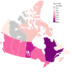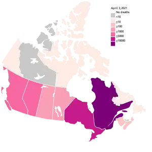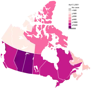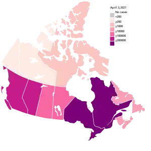 | COVID-19 pandemic in Canada by province and territory, 9 April 2021 0240 UTC () | ||||||||||