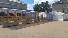 Initially, the authorities strongly recommended that all events with more than one thousand people be cancelled or postponed, but on 11 March the limit was lowered to one hundred people;[82] this recommendation covers March, but can be extended if necessary. Among others, football (including the Danish Superliga) and handball matches were without spectators or entirely cancelled, the Dansk Melodi Grand Prix did not have an audience, concerts and conferences were cancelled or postponed, and the Euroschoolsport tournament at Esbjerg High School, where students and teachers from much of Europe were supposed to meet, was cancelled.[83][84][85][86][87][88] The Folketing cancelled some of its regular meetings and hearings, and when voting a clearing system will be used to avoid having more than 95 members in the main chamber at any one time.[89]