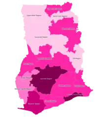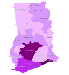 The hotspots identified were in the Greater Accra, Ashanti and Central Regions. In Greater Accra, the Tema Metropolitan, Accra Metropolitan, Klottey Korle and Kpong Katamanso districts recorded the highest tallies with Tema taking the top position, followed by the Ablekuma, Okaikwei South and North, Ashiaman and Adenta areas as well as the Ga Central townships. In the Ashanti Region, Obuasi had the highest figures followed by Kumasi, Oforikrom, and Nkawie. Other areas were Old Tafo, Asokwa, Kumasi Municipal, Kumasi Metropolis and Suame which has high numbers as well. Komenda-Edina-Eguafo-Abbrem (KEEA) District, Cape Coast, and Ajumako are the districts with the high numbers in the Central Region.[30]