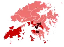 The outbreak of the pandemic evoked memories as the city was at the forefront of the SARS epidemic in 2003, when over 1,700 people contracted the virus and almost 300 people died locally.[10] The coronavirus outbreak in Wuhan took place against the backdrop of widespread and intense political conflict and civil unrest fed by anti-government sentiment, since June 2019.[11][12] Carrie Lam, the city's Chief Executive, was reported in May 2020 to have a negative approval rating of 80 percent.[4] The District Council elections in November, widely regarded as a proxy referendum over the protest movement's demands,[13] saw the pro-democracy camp achieve their biggest landslide victory in Hong Kong's history, where they took control of 17 out of 18 districts.[13][14] The economy of the city has been reeling under the effects of the unrest, as the number of mainland visitors fell and business confidence suffered, and the city slipped into recession.[15]
