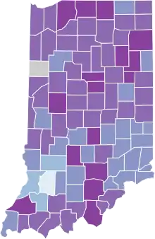 | Vanderburgh | 19,905 | 257 | 181,451 | 10,969.9 | ||