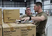 ![]() Members of the Kentucky National Guard assist in providing medical supplies | |