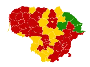 - "Sprendimas dėl savivaldybių, priskiriamų žaliajai, geltonajai ir raudonajai zonai, nustatymo" (PDF). sam.lrv.lt (in Lithuanian). Retrieved 25 October 2020.