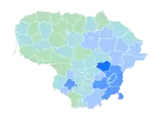 On 17 September, the last municipality with no coronavirus cases, Birštonas, confirmed its first case.[13] All 60 municipalities have since recorded at least one confirmed case of infection.