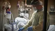 Numerous "clusters" of confirmed cases have appeared at nursing homes across southern Louisiana, including an outbreak at Lambeth House in New Orleans that has infected over fifty and killed thirteen elderly residents as of March 30.[6][7] As the state has increased its capacity for testing, a University of Louisiana at Lafayette study estimated the growth rate in Louisiana was among the highest in the world, prompting serious concerns about the state's healthcare capacity to care for sick patients.[8] On March 24, only 29% of ICU beds were vacant statewide, and Edwards announced coronavirus patients would likely overwhelm hospitals in New Orleans by April 4.[9]