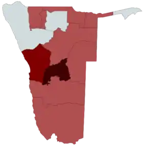 23 June: 9 new cases were registered. 8 were in Kuisebmond in Walvis Bay - two of those were contacts of case number 35 while the other 6 cases had no contact with a confirmed case. The last case was a truck driver from South Africa.[35][36]