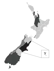 ![]() Map of cases per million inhabitants in New Zealand by district health board