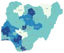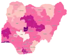 ![]() Cumulative confirmed COVID-19 cases in Nigeria by state as of 6 April 2021
