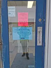 Starting March 25, air entry into Nunavut by non-residents was prohibited, with exemptions granted for critical medical workers. Residents returning to the territory are required to quarantine for 14 days at a hotel in either Edmonton, Ottawa, Winnipeg, or Yellowknife before flying back. They are monitored by security guards enforcing the quarantine, and are provided with meals.[19] These services are paid for by the government; on May 6, Premier Savikataaq backpedalled on a proposal to require these hotel stays be covered by the traveller (at a cost of $2,100 per person), as "travel at this time is a risk and we don't want to undo all the hard work we have done."[75] Exceptions were later made for those receiving medical treatment in Yellowknife.[76] The travel advisory against in-territory travel ended June 1, but other restrictions remained.[44]