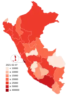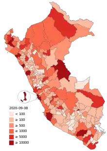 ![]() Confirmed cases of COVID-19 in Peru by province | |