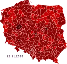 ![]() Map of powiats with confirmed SARS-CoV-2 cases[1]