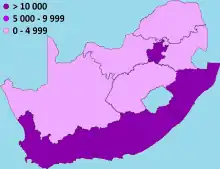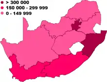 On 20 March, the Free State province recorded seven cases, becoming the sixth of South Africa's nine provinces to be infected.[37] Of the seven cases, five were from abroad (Israel, France and Texas) who had congregated in Bloemfontein for a prayer breakfast attended by 859 people.[38][39] The Eastern Cape reported its first case one day later.[40]