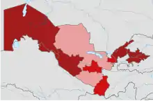 ![]() Map of the outbreak in Uzbekistan by region (as of 4 May 2020)