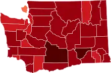 ![]() Map of the outbreak in Washington by confirmed total infections per 100,000 people (as of April 8)