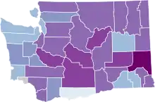 | Klickitat | 684 | 34 | 9 | 6,362 | 22,425 | 3,050.2 | [24] |