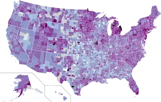![]() Map of the outbreak in the United States by confirmed new infections per 100,000 people (14 days preceding April 8)