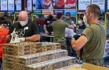 By the end of March, states were in a bidding war against each other and the federal government for scarce medical supplies such as N95 masks, surgical masks, and ventilators.[186][187][21] Meanwhile, as states scrambled to purchase supplies at inflated prices from third party distributors (some of which later turned out to be defective), hundreds of tons of medical-grade face masks were shipped by air freight to foreign buyers in China and other countries.[178]