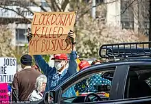 - Siegler, Kirk (April 18, 2020). "Across America, Frustrated Protesters Rally To Reopen The Economy". NPR. Archived from the original on April 22, 2020. Retrieved April 23, 2020.
