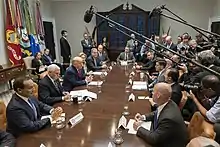 On February 5, Trump administration officials declined an offer for congressional coronavirus funding. Senator Chris Murphy recalled that the officials, including Secretary Azar, "didn't need emergency funding, that they would be able to handle it within existing appropriations."[175] On February 7 Mike Pompeo announced the administration donated more than 35,000 pounds of "masks, gowns, gauze, respirators, and other vital materials" to China the same day the WHO warned about "the limited stock of PPE (personal protective equipment)".[173]