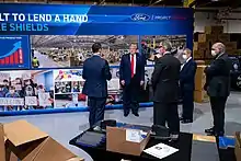 Medical organizations such as the American Medical Association and American Nurses Association implored Trump to obtain medical supplies, because they were "urgently needed".[188][189] That led President Trump to sign an order setting motion parts of the Defense Production Act, first used during the Korean War, to allow the federal government a wide range of powers, including telling industries on what to produce, allocating supplies, giving incentives to industries, and allowing companies to cooperate.[190][191] Trump then ordered auto manufacturer General Motors to make ventilators.[22]