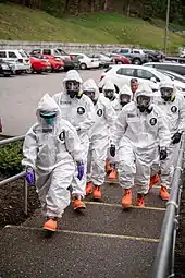 By the middle of March, all fifty states were able to perform tests with a doctor's approval, either from the CDC or from commercial labs. However, the number of available test kits remained limited, which meant the true number of people infected had to be estimated.[61] As cases began spreading throughout the nation, federal and state agencies began taking urgent steps to prepare for a surge of hospital patients. Among the actions was establishing additional places for patients in case hospitals became overwhelmed.[62] Manpower from the military and volunteer armies were called up to help construct the emergency facilities.[63][64]
