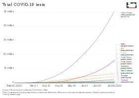 Timeline of total number of tests in different countries[89]
