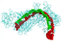 ![]() CRISPR Cascade protein (cyan) bound to CRISPR RNA (green) and phage DNA (red)[1] | |