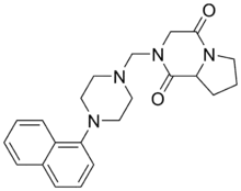 - López-Rodríguez ML, Morcillo MJ, Fernández E, et al. (April 2003). "Design and synthesis of S-(−)-2-[[4-(napht-1-yl)piperazin-1-yl]methyl]-1,4-dioxoperhydropyrrolo[1,2-a]pyrazine (CSP-2503) using computational simulation. A 5-HT1A receptor agonist". Bioorganic & Medicinal Chemistry Letters. 13 (8): 1429–32. doi:10.1016/S0960-894X(03)00160-4. PMID 12668005.