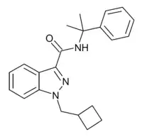 CUMYL-CBMINACA (SGT-277) is an indazole-3-carboxamide based synthetic cannabinoid receptor agonist that has been sold as a designer drug, first being identified in Germany in February 2020.[1]