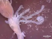 Many fish have a number of small outpocketings, called pyloric ceca, along their intestine; despite the name they are not homologous with the cecum of amniotes, and their purpose is to increase the overall area of the digestive epithelium.[7] Some invertebrates, such as squid,[14] may also have structures with the same name, but these have no relationship with those of vertebrates.