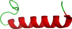 Calcitonin is a polypeptide hormone of 32 amino acids, with a molecular weight of 3454.93 daltons. Its structure comprises a single alpha helix.[30] Alternative splicing of the gene coding for calcitonin produces a distantly related peptide of 37 amino acids, called calcitonin gene-related peptide (CGRP), beta type.[31]