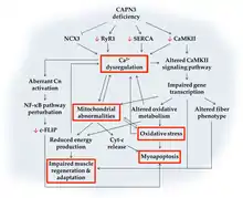 - Lasa-Elgarresta, J; Mosqueira-Martín, L; Naldaiz-Gastesi, N; Sáenz, A; López de Munain, A; Vallejo-Illarramendi, A (13 September 2019). "Calcium Mechanisms in Limb-Girdle Muscular Dystrophy with CAPN3 Mutations". International Journal of Molecular Sciences. 20 (18): 4548. doi:10.3390/ijms20184548. PMC 6770289. PMID 31540302.