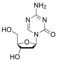Drugs that specifically target the inverted methylation pattern of cancerous cells include the DNA methyltransferase inhibitors azacitidine[124][125] and decitabine.[126][127] These hypomethylating agents are used to treat myelodysplastic syndrome,[128] a blood cancer produced by abnormal bone marrow stem cells.[12] These agents inhibit all three types of active DNA methyltransferases, and had been thought to be highly toxic, but proved to be effective when used in low dosage, reducing progression of myelodysplastic syndrome to leukemia.[129]