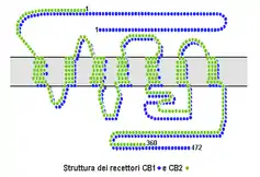The protein sequences of CB1 and CB2 receptors are about 44% similar.[12][13] When only the transmembrane regions of the receptors are considered, amino acid similarity between the two receptor subtypes is approximately 68%.[5] In addition, minor variations in each receptor have been identified. Cannabinoids bind reversibly and stereo-selectively to the cannabinoid receptors. Subtype selective cannabinoids have been developed which theoretically may have advantages for treatment of certain diseases such as obesity.[14]