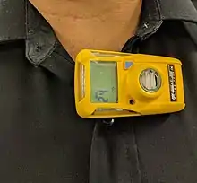 The United States Consumer Product Safety Commission has stated, "carbon monoxide detectors are as important to home safety as smoke detectors are," and recommends each home have at least one carbon monoxide detector, and preferably one on each level of the building.[97] These devices, which are relatively inexpensive[98] and widely available, are either battery- or AC-powered, with or without battery backup.[99] In buildings, carbon monoxide detectors are usually installed around heaters and other equipment. If a relatively high level of carbon monoxide is detected, the device sounds an alarm, giving people the chance to evacuate and ventilate the building.[98][100] Unlike smoke detectors, carbon monoxide detectors do not need to be placed near ceiling level.