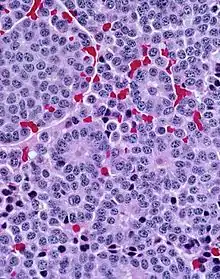 Histopathology of a typical carcinoid tumor of the lung, with prominent rosettes.