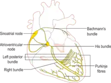 Other than the SAN, the AVN and purkinje fibres also have pacemaker activity and can therefore spontaneously generate an action potential. However, these cells usually do not depolarize spontaneously, simply because, action potential production in the SAN is faster. This means that before the AVN or purkinje fibres reach the threshold potential for an action potential, they are depolarized by the oncoming impulse from the SAN[37] This is called "overdrive suppression".[38] Pacemaker activity of these cells is vital, as it means that if the SAN were to fail, then the heart could continue to beat, albeit at a lower rate (AVN= 40-60 beats per minute, purkinje fibres = 20-40 beats per minute). These pacemakers will keep a patient alive until the emergency team arrives.