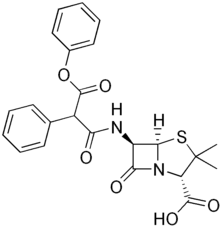 Carfecillin is a beta-lactam antibiotic. It is a phenyl derivative of carbenicillin, acting as a prodrug.