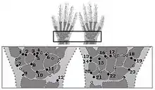 The carpus and tarsus are both described as podial elements or (clusters of) podial bones.[14]