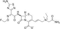 (6R,7R)-3-[(E)-3-[(2-amino-2-oxoethyl)-ethyl-methylazaniumyl]prop-1-enyl]-7-[[(2Z)-2-(5-amino-1,2,4-thiadiazol-3-yl)-2-(fluoromethoxyimino)acetyl]amino]-8-oxo-5-thia-1-azabicyclo[4.2.0]oct-2-ene-2-carboxylate | |