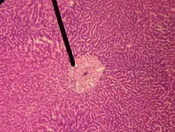The central veins of liver (or central venules)[1] are veins found at the center of hepatic lobules (one vein at each lobule center).